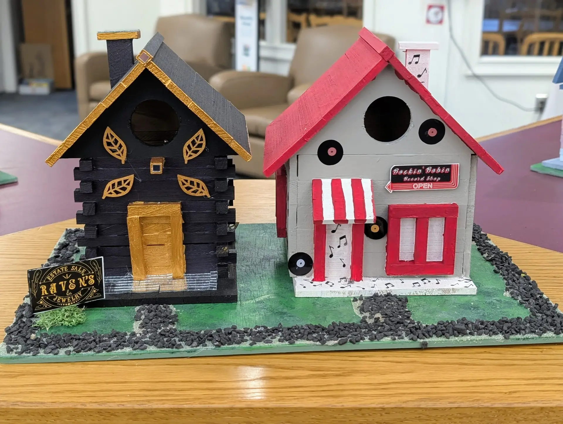 Each birdhouse has a pitched roof and loft-style shape. The finished size is about 6.5″ wide, 7″ tall, and 9″ deep. The wood pieces fit together smoothly, so the build feels easy and satisfying. You can paint, stain, or leave the natural wood grain as-is—every option looks great.
